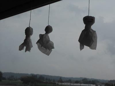 3年生の教室に「てるてる坊主」が笑顔で飾られていました。明日は晴れますように・・・・