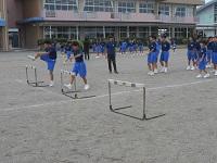 校庭では教育実習生の「ハードル」の指導が行われていました。