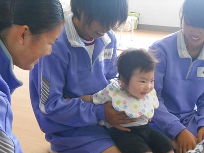 【赤ちゃんふれあい】 4時間目、2年3組が「赤ちゃんふれあい」を行いました。赤ちゃんとお母さん、妊婦さん、スタッフ総勢30名以上の方が来校し、子育てや出産での苦労や楽しいことを話してくれました。はじめは緊張していた生徒も赤ちゃんを抱っこしながら笑顔が絶えない一時を過ごしました。