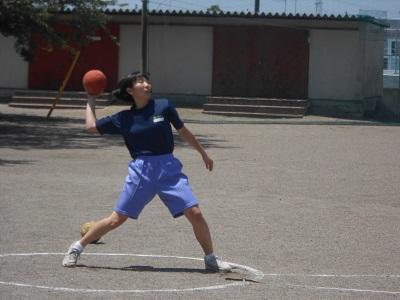 ボール投げです。ソフトボール部や野球部は得意種目です。