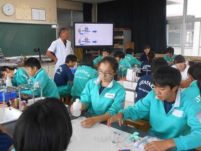 同じく5時間目、3年2組「理科」化学変化と電池をテーマに実験から疑問に思ったことをグループで協議しました。この授業にも多くの先生方に参観いただき、本校生徒の良さを実感しました。