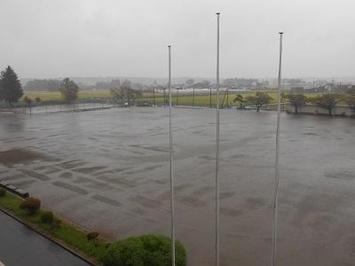 【学校の様子】 7:00現在 校庭の様子です。側溝の雨水が溢れています。