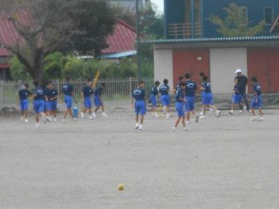 【授業の様子】 期末テスト終了後の4時間目、校庭では2年1・2組(男子)の「保健体育」でソフトボールを行っていました。大いに身体を動かしていました。