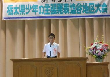 【塩谷地区少年の主張発表大会】 矢板東附属中学校で「第49回塩谷地区少年の主張発表大会」が行われました。発表順が9番目(最後)で緊張したかと思いますが、すばらしい発表態度でした。わずかな時間の練習でしたが、大きく成長しました。御苦労様でした。