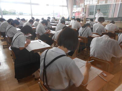 【テストの様子】1時間目の様子です。2年生は「英語」3年生は「理科」でした。