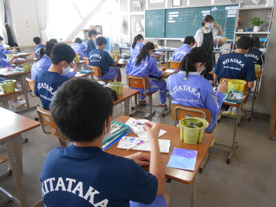 2年1組「国語」”字のない葉書”を読んで内容を理解していました。