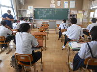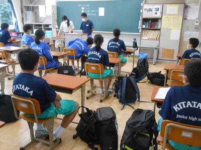【保健講話】専門医を講師として「保健講話」を行いました。夏休み中に事件・事故につながりやすい「たばこや薬物乱用」「性被害」について学びました。体育館での暑い中でしたが、最後までしっかり説明を聞いていました。ぜひ、楽しい夏休みにしましょう。