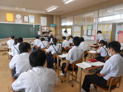 教育実習生が「研究授業」を行いました。多くの先生方が参観した中で、緊張しながら実施していました。3週間の中で多くのことを経験したことでしょう。今後の御活躍を期待いたします。
