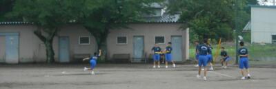 3年2・3組「保健体育」男子はソフトボールの試合を行っていました。柔らかいボールを使っての基本練習です。