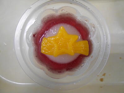 【給食メニュー】星形ハンバーグ、雷汁、七夕ゼリーで、今日は七夕メニューでした。
