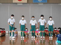 【部活動後継式】各部とも大会が中止になり、残念がっていましたが、本校で一緒に取り組んだ仲間への感謝と後輩へのアドバイスが述べられました。とても感動した式となりました。