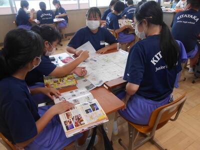 【修学旅行事前学習】修学旅行まで約2か月となりました。各グループでは2日目の班別行動について資料や地図を参考に決めていました。特に昼食では予約が必要なお店なども調べていました。現在、国土交通省観光庁の「Go To トラベルキャンペーン」の対象になるとのことです。旅行業者に一時、全額支払いますが、半額相当が対象になり、約7割が代金割引、約3割が地域共通のクーポンで還元されるようです。とにかく生徒が楽しみにしている「修学旅行」が予定どおり実施できることを願うばかりです。