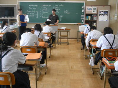 3年2組「英語」少人数により、きめ細かな指導が行われていました。英語が好きになる生徒が増えることを願っています。