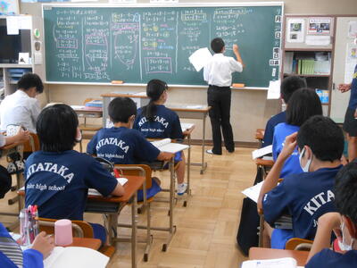 2年1組 統計上、問題に対して無回答の生徒は成績が向上しずらいとのこと。間違ってもいいから最後まで諦めず問題を解いてほしいですね。