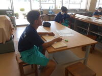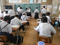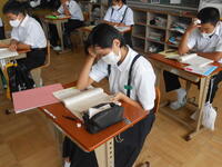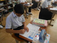 2年1組「国語」”鰹節”について要点をまとめていました。終わった生徒は先生に確認してもらいました。
