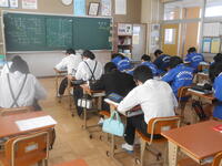 【授業参観】3年1組「数学」2次関数とグラフです。数学はいかに多くの問題を素早く解くかが大切です。私立高校の試験まで2か月となりました。