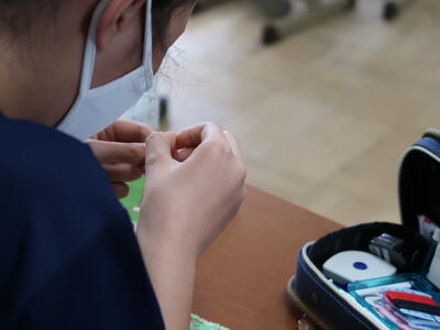 1年1組「家庭」針と糸を使って、直線縫いですが細かく(1cm程度)縫うことが課題でした。
