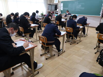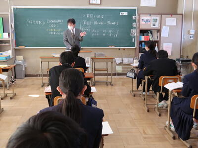 【授業参観】3年1組「数学」演習問題を取り組んでいました。実力テスト・模擬テスト等、3年生は毎日のように入試に向けて問題に取り組んでいますが、精神的にも強くなることが大切です。