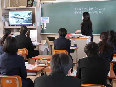 【授業参観】3年1組「社会」開発途上地域の開発を目的とする政府や政府関係機関による国際協力活動について映像で確認していました。