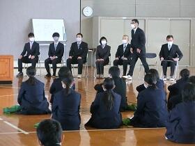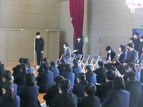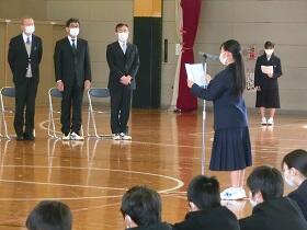 本日、令和3年度の新任式と第1学期始業式を実施しました。まず新任式は、13名の新しく着任した先生方を紹介する式ですが、生徒会が中心になり立派な式になりました。特に生徒代表の歓迎の言葉は素敵でした。