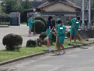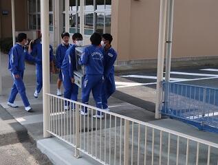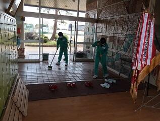 今日の午後、明日実施される令和3年度の入学式の準備を、2、3年生が行いました。みんなよく働き、準備は万端です。明日は、入学生47名が元気に登校し、よい入学式になることを願っています。