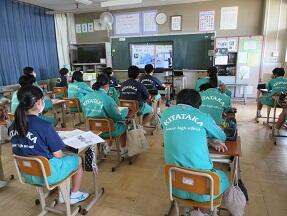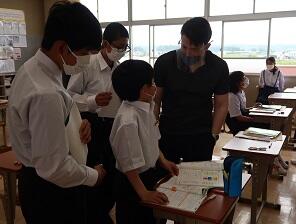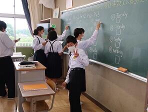 新出単語と本文の意味の確認をしています。とても活動的な授業で、生徒たちが楽しそうに取り組んでいるように見えます。