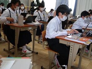 thinkやbe sureを使って文を書くことができるというゴールに向かって授業が展開されていました。前時の復習に意欲的に取り組んでいるのが印象的でした。