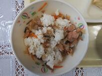 今日の給食は、セルフ五目ご飯(ご飯、五目ご飯の具)、牛乳、厚焼き卵、ゆばとほうれん草のスープです。高根沢町で生産されたものは、にんじん、ねぎ、しいたけ、米です。今日もたいへんおいしく頂きました。