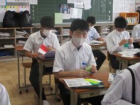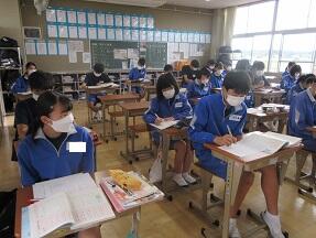 Unit5 Part1の本文を、隣の席の人と距離を気にしながら読み合っていました。みんな真剣に取り組んでいました。