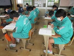 熟語の構成について学習プリントの問題の答えの確認をしていました。なかなか難しい問題でしたが、みんな真剣に取り組み理解しようと頑張っていました。