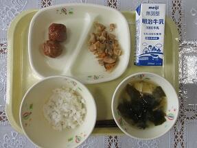 今日の給食は、セルフ五目ご飯(麦ご飯・五目ご飯の具)、牛乳、野菜肉団子、豆腐とわかめの味噌汁です。高根沢町で生産された物は、豆腐、味噌、干ししいたけ、ねぎ、米です。今日もたいへんおいしく頂きました。