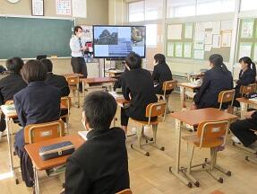 中部地方の導入の授業が展開されていました。中部地方のいろいろな名所や特産物の映像を提示するなどして、工夫された導入が展開されていました。