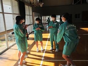 女子は創作ダンスの授業が展開されていました。どのグループも工夫したダンスにしようと頑張っていました。ICT機器が効果的に使われている授業でした。(一つのグループの一部分を動画でアップしました。)