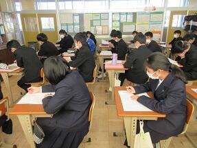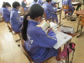 テスト返却と、振り返りを実施していました。生徒たちの表情は様々でした。
