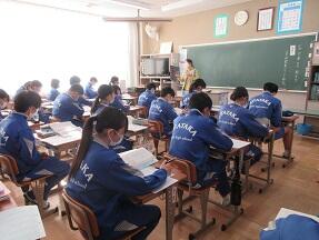 アフリカ州の経済について学習が展開されていました。1年生の地理の学習もどんどん進んでアフリカ州まで来ました。みんな真剣に取り組んでいました。