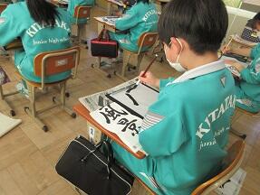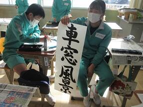 毛筆で書き初めの「車窓風景」という文字の練習をしていました。集中して取り組んでいるので、物音一つ聞こえてきませんでした。