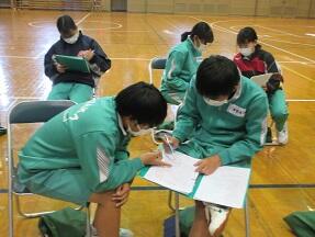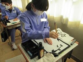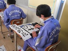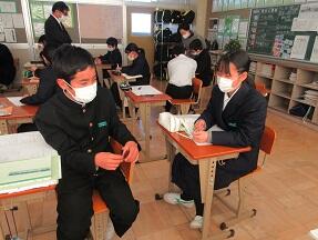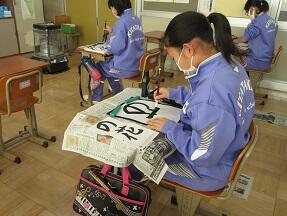 今日の2校時に、1年1組の国語の授業を見ているとき、練習した習字紙を置く新聞紙がない生徒に、隣の男子生徒が自分の新聞紙を広げて、「こっち側使っていいよ。」と半分を貸してあげていました。なんともよい光景で、心が温かくなりました。
