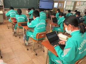 東北地方の学習で、インターネットや教科書等を使って、東北地方の観光プランを立てる活動が展開されていました。