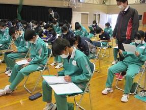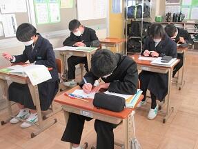 復習でワークの問題を解いていました。3年生は年が明けたらすぐに私立の入試になります。頑張りましょう。