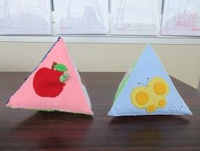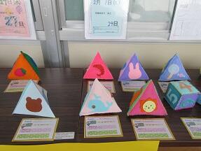 昨日紹介した、3年生の家庭科の作品が廊下に展示されていたので紹介します。みんなよくでききていました。