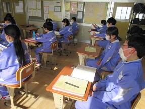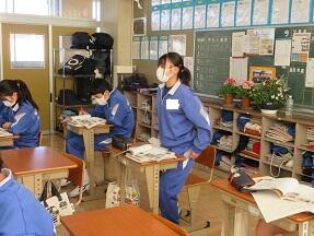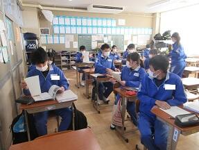 長野と愛知が紹介されている本文を理解する学習が展開されていました。