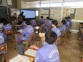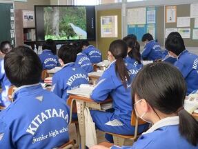 人間と自然環境は互いにどのように影響し合っているのかを学習していました。映像が効果的に使われている授業でした。