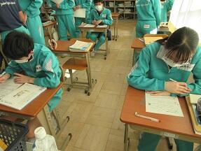 テストに向けて、英作文を書く練習をしていました。みんなよくやっていました。