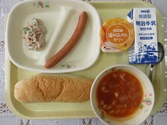 今日の給食は、西小学校6年3組リクエスト給食、セルフサンド(牛乳パン・ウインナー・ツナサラダ)、牛乳 ミネストローネ、みかんゼリーです。高根沢町で生産された物は、にんじん、大根です。今日もたいへんおいしく頂きました。