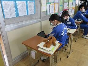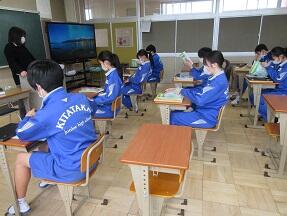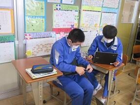 本文理解と3年間を締めくくる言葉を考えてスライドづくりをする授業が展開されていました。どんなスライドができるのか楽しみです。