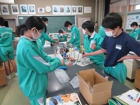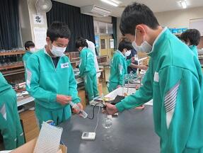 気圧を変化させて雲を発生させる実験を行っていました。どのグループも上手く実験が進んでいるようでした。