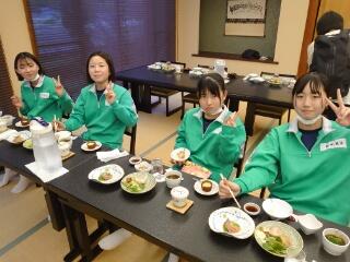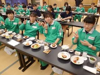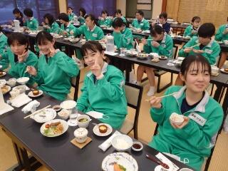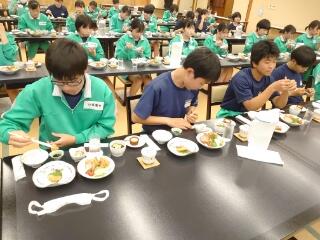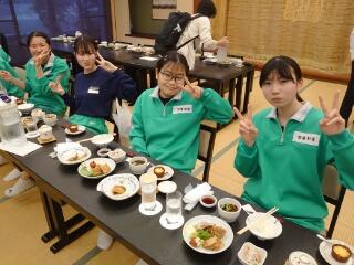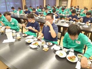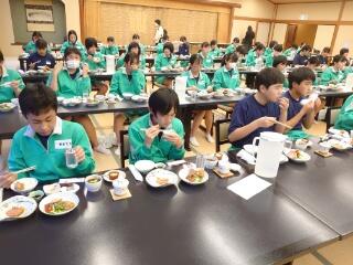 1日目の夕食です。昼食が早かったので、お腹がすいているようでみんなとてもおいしそうに食べています。