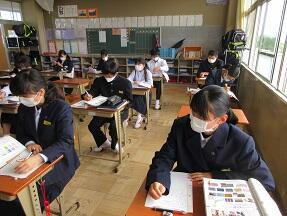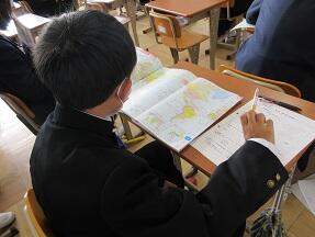 ワークシートを使って「世界のすがた」の単元のまとめをしていました。