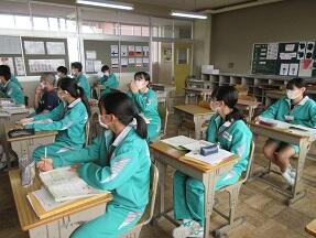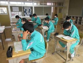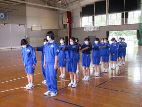 集団行動の練習をしていました。まだまだ中学生になりきれていない感じがしました。