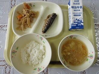 今日の給食は、こどもの日メニューで、セルフたけのこ入り五目ご飯(ご飯・たけのこご飯の具)、牛乳、いわしの梅醤油煮、干ぴょう入りかき卵汁です。高根沢町で生産された物は、豆腐、にんじん、ねぎ、米です。今日もたいへんおいしく頂きました。